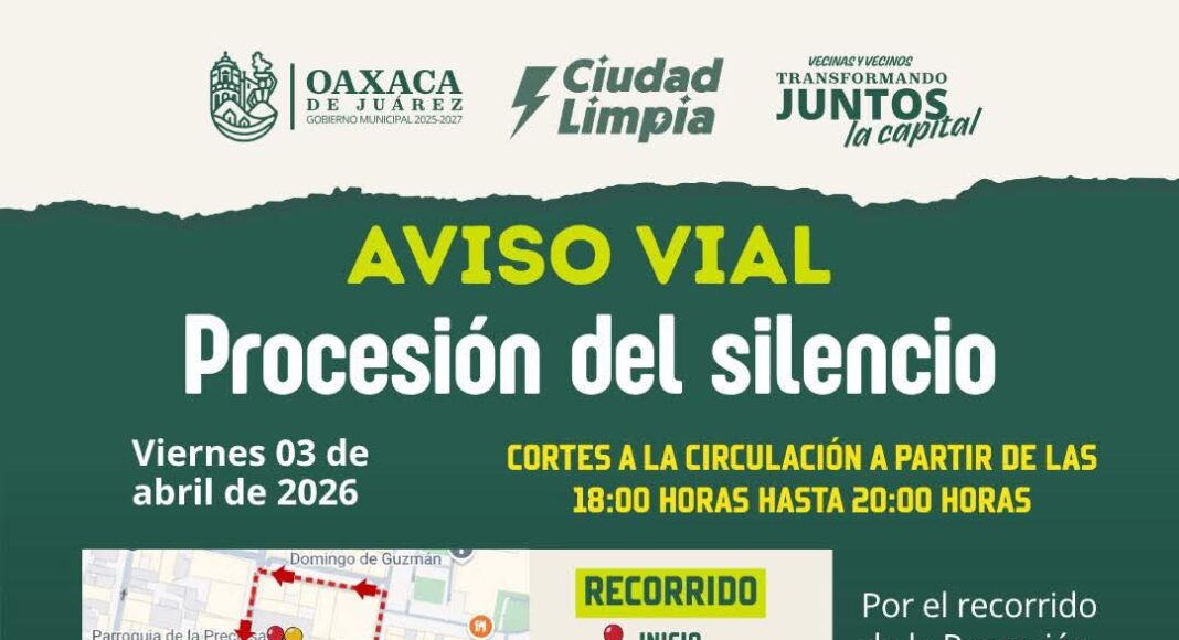 Con motivo de la Procesión del Silencio, se realizarán cortes a la circulación en las principales calles de nuestro Centro Histórico este viernes 3...