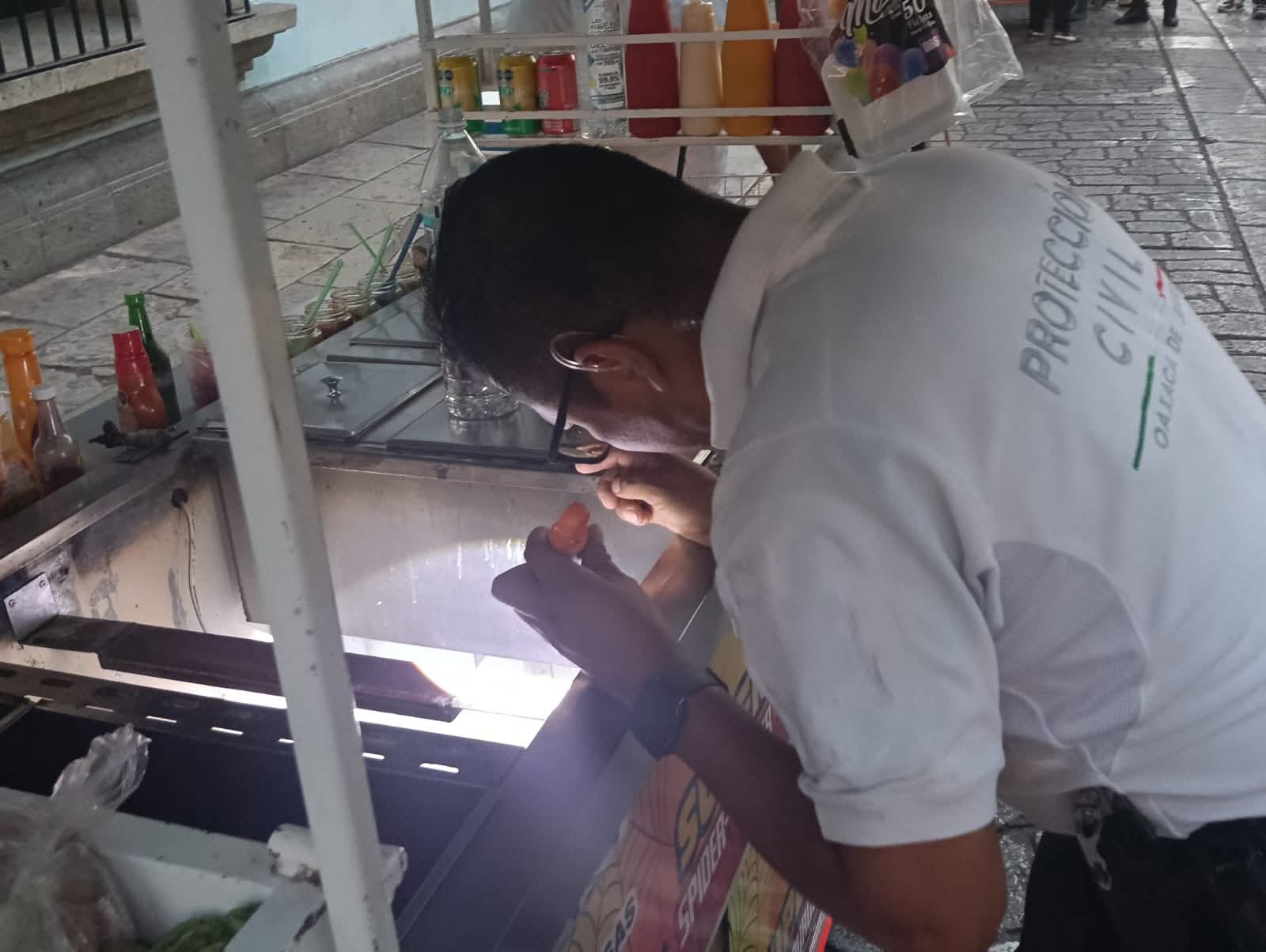 La Dirección de Protección Civil Municipal de Oaxaca de Juárez atendió el reporte de una flama por acumulación de gas en un carrito de venta de hamburguesas, en el Centro Histórico.