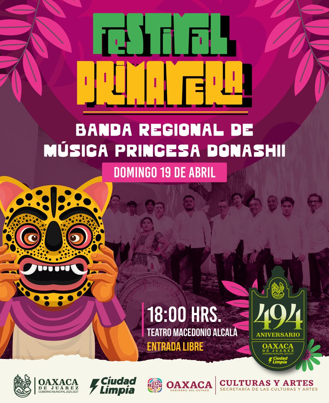 Este domingo comienzan las actividades del Festival Primavera con la presentación de la Banda Regional de Música Princesa Donashii.