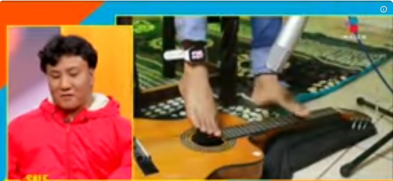 - Nació sin sus dos brazos. Sin embargo, es un genial guitarrista oaxaqueño que interpreta melodías con los pies. Su éxito confirma que con decisión y fuerza de voluntad no hay límites para triunfar.
