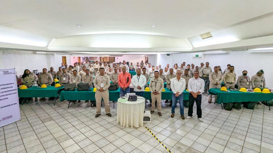 Santo Domingo Tehuantepec, Oax., 5 de noviembre de 2025.- Para fortalecer las acciones de prevención y control, Servicios de Salud de Oaxaca (SSO) capacita a más de 100 personas trabajadoras operativas del Programa de Enfermedades Transmitidas por Vector (ETV) e Intoxicación por Artrópodos (IVAr) de la Jurisdicción Sanitaria 2 Istmo.
