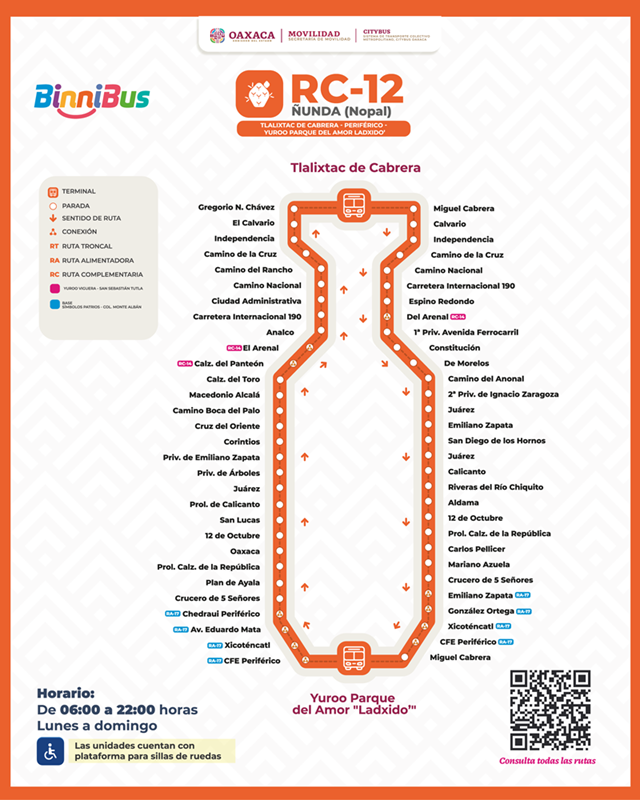 Oaxaca de Juárez, Oax., 3 de octubre de 2025. La ruta conocida como RC-03 cambia, a partir de este 3 de octubre, su nomenclatura y alcance, convirtiéndose en RC-12 Ñunda, que en lengua ixcateca significa Nopal, la cual unirá Tlalixtac de Cabrera con Yuroo Parque del Amor “Laxidó”.
