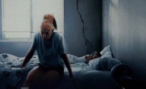 A través de un corte en la escena, vemos a Janiyah cargando a su hija al salir del hospital; la cámara, sin avisar, nos regresa a una recámara ahogada por las voces lejanas, pero igualmente ensordecedoras, de los vecinos. Ese pequeño cuarto se ha transformado en un refugio precario para ella y su pequeña Aria, quien, tras complicaciones durante el parto, sufre convulsiones frecuentes. Pero el sistema de salud, lejos de ser un aliado, se convierte en el monstruo reconocible de tantas historias contemporáneas, un monstruo que castiga a quienes no poseen los recursos económicos para comprar seguridad social, un monstruo que, en lugar de sanar, desgarra la herida abierta de Janiyah al negarle a Aria las condiciones mínimas para mejorar su salud.