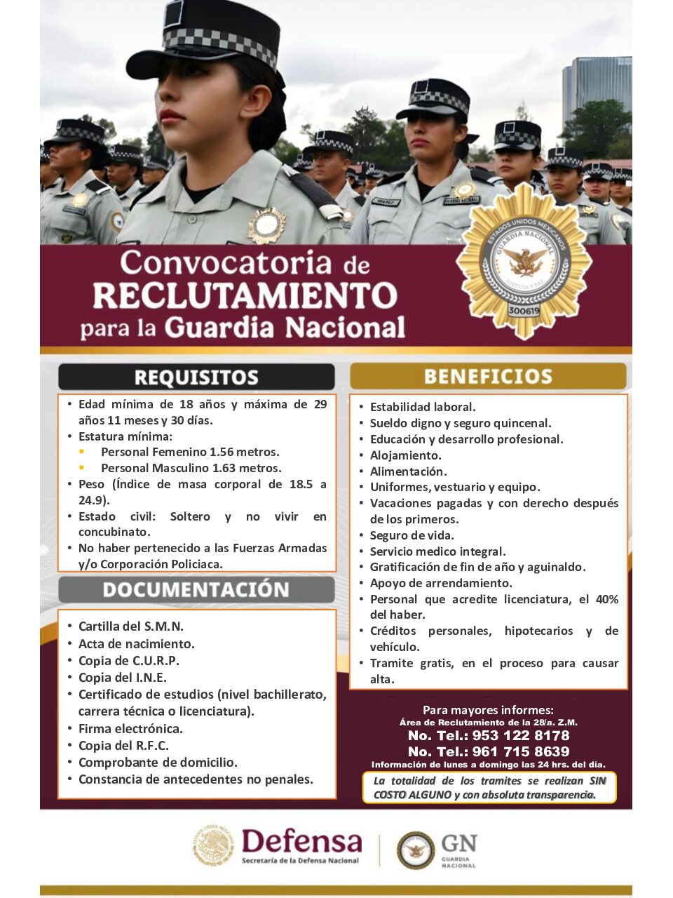 Convocatoria de Reclutamiento de Elementos de la Guardia Nacional
