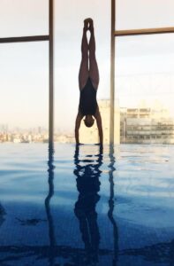 La verdad es que yo no sabía que existían los clavados. Yo era gimnasta desde los seis años, y mi mundo era el gimnasio, el piso, las barras, la disciplina de ese entorno. Cuando me invitaron a los clavados, tenía once años y ni siquiera sabía nadar. Recuerdo que mi prima me dijo simplemente: “Acompáñame”, y fui con mi leotardo puesto, pensando que sería algo parecido a lo que ya conocía.