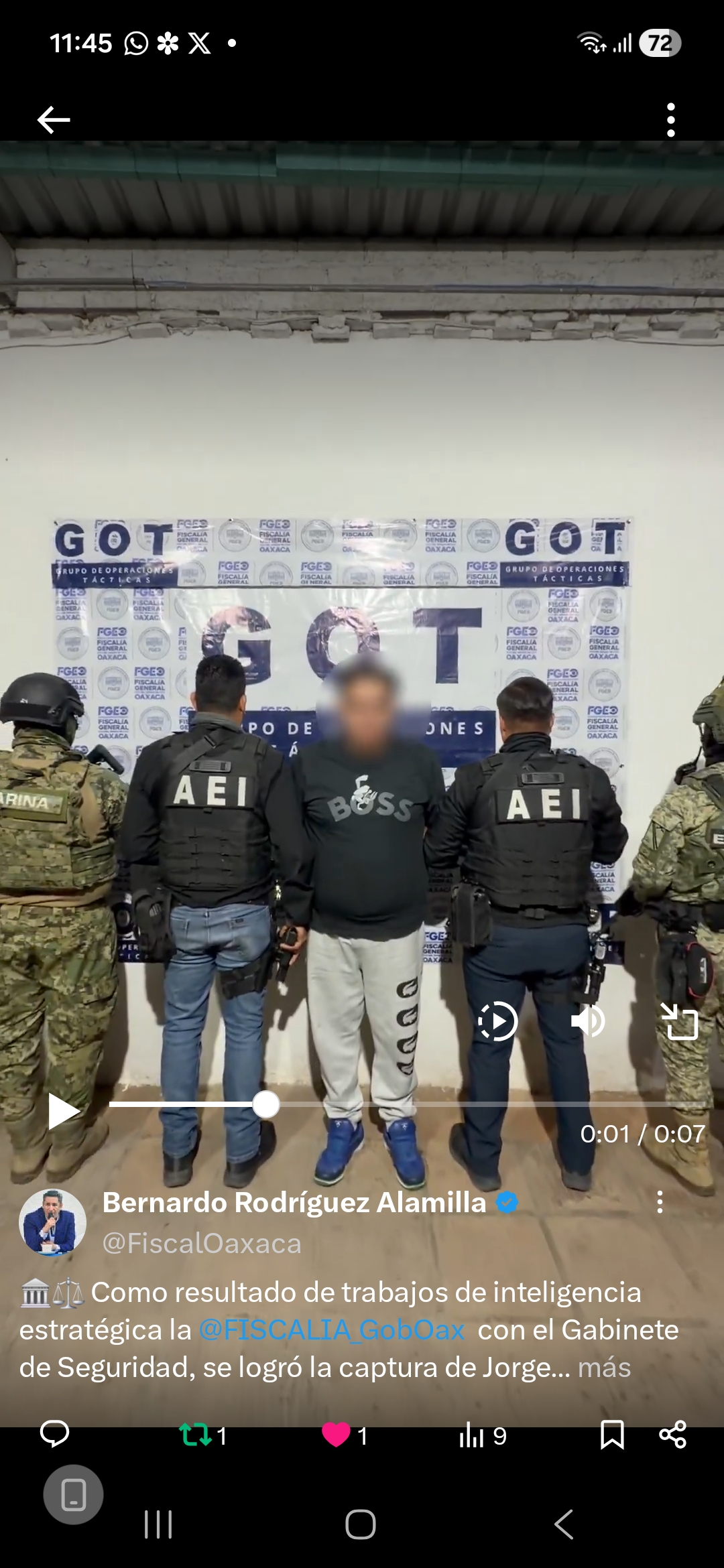 Como resultado de trabajos de inteligencia estratégica la @FISCALIA_GobOax con el Gabinete de Seguridad, se logró la captura de Jorge Armando H.V., alias “El Kilo”.