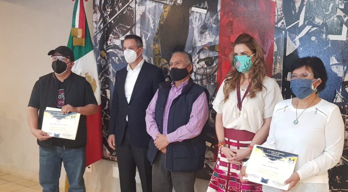 Jaime Arizmendi de Comunicadores por la Unidad (CXU) y la presidenta de la Comisión de Gobernación y Población de la Cámara de Diputados federal, Rocío Barrera, galardonaron a cinco periodistas oaxaqueños.