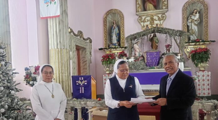 La entrega de la donación de medicamentos se realizó en la capilla del Hospital Ángel Vasconcelos a las religiosas Leticia González y Celiflora Pereda, directora y asistente de esta, respectivamente.