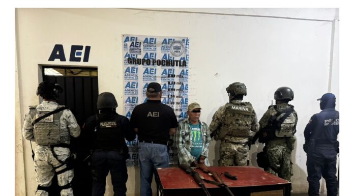 Fiscalía de Oaxaca recupera maquinaria robada y asegura armamento con cargadores de alta capacidad durante cateo; hay un detenido