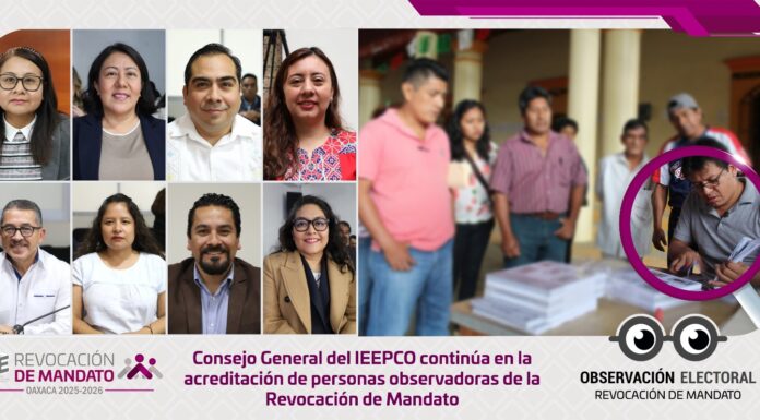 Este viernes, el Consejo General del Instituto Estatal Electoral y de Participación Ciudadana de Oaxaca (IEEPCO), en Sesión Extraordinaria Urgente, aprobó un cuarto bloque de acreditaciones de personas ciudadanas registradas para participar como observadoras en la Jornada de Revocación de Mandato, que se llevará...
