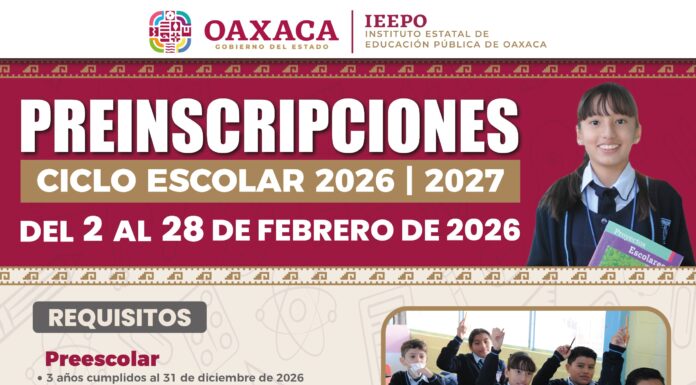 Preinscripciones de educación básica para ciclo escolar 2026-2027 serán del 2 al 28 de febrero: IEEPO