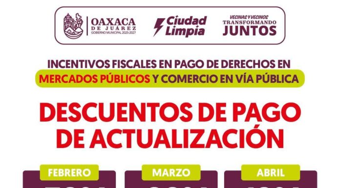 Cabildo de Oaxaca de Juárez invita a comerciantes de mercados y comercio en vía pública a aprovechar incentivos fiscales