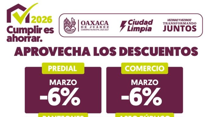 Municipio de Oaxaca de Juárez mantiene descuento del 6% en predial durante marzo