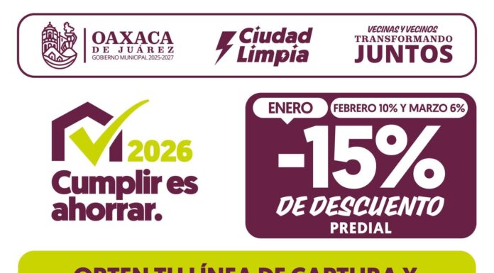 Inicia en Oaxaca de Juárez el pago del impuesto predial con descuentos durante enero