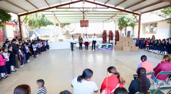 Dentro de los recursos otorgados destacan 10 computadoras, dos pantallas Smart Tv y un video proyector; así como un lote de mesas y sillas.