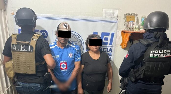 Fiscalía de Oaxaca junto con SSPC realizan cateo en un bar de la Sierra de Flores Magón y detienen a una pareja con posesión de drogas