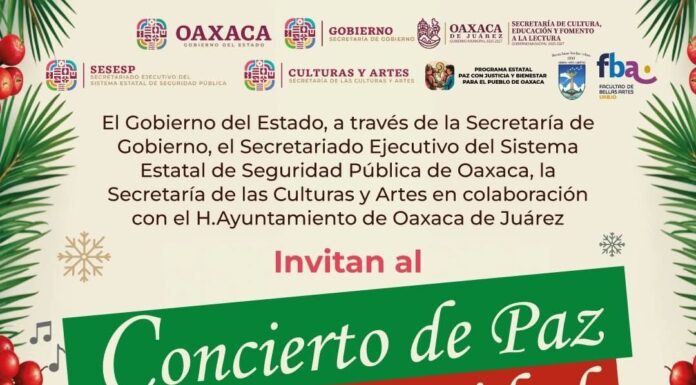 Invita Gobierno de Oaxaca al Concierto de Paz para la Navidad en el zócalo capitalino