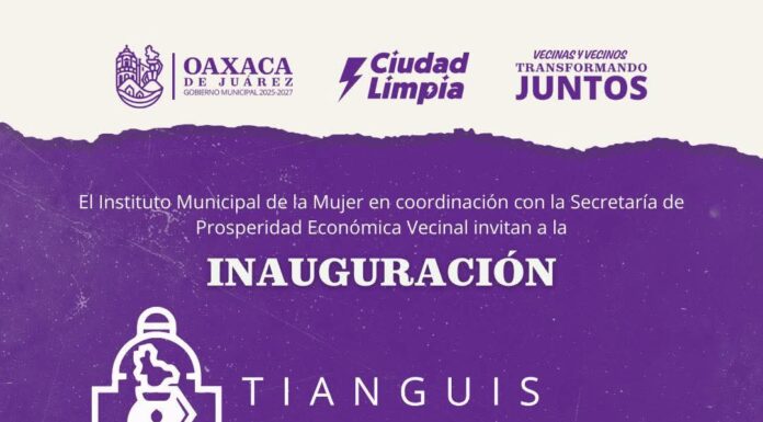 El Instituto Municipal de la Mujer, en coordinación con la Secretaría de Prosperidad Económica Vecinal, invita a la inauguración del Tianguis Violeta, que será encabezada por el Presidente Municipal de Oaxaca de Juárez Ray Chagoya.
