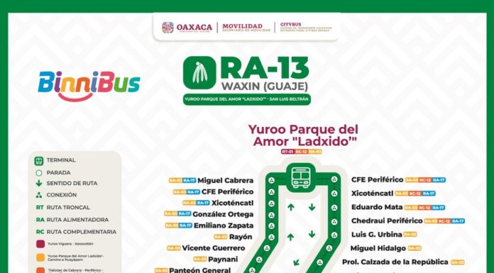 Se trata de las líneas RA-13 “Waxin”, que va de la terminal Yuroo Parque del Amor “Ladxidó” a la agencia de policía San Luis Beltrán, y RC-06 “Mondok”, que une a San Jacinto Amilpas con el Camino a Huayápam
