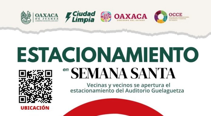 El Presidente Municipal Ray Chagoya informó que del 2 al 5 de abril, se habilitará el estacionamiento del Auditorio Guelaguetza como una alternativa segura y accesible, en coordinación con la Oficina de Convenciones, Congresos y Eventos de Oaxaca.