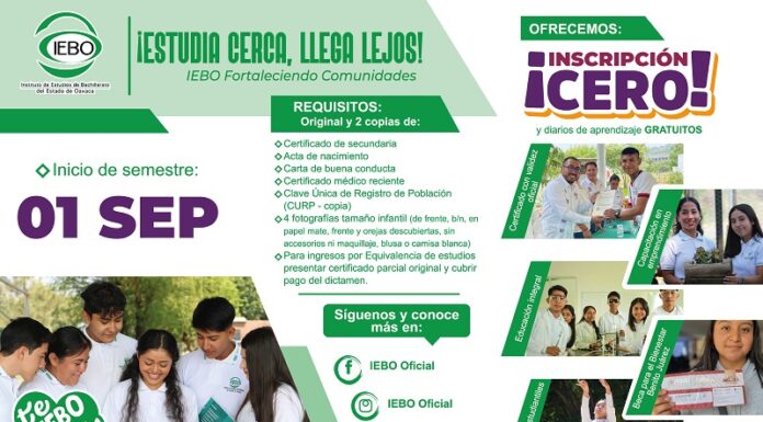 Convoca IEBO a inscribirse a su red de 262 planteles en el estado