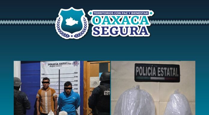Oaxaca de Juárez, Oax. 3 de febrero de 2026.- Elementos de la Policía Estatal detuvieron a dos masculinos por su presunta responsabilidad en la comisión de...