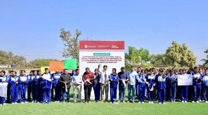 Compromiso cumplido, entrega Salomón Jara cancha de fútbol 7 en Telesecundaria de Ciénega de Zimatlán