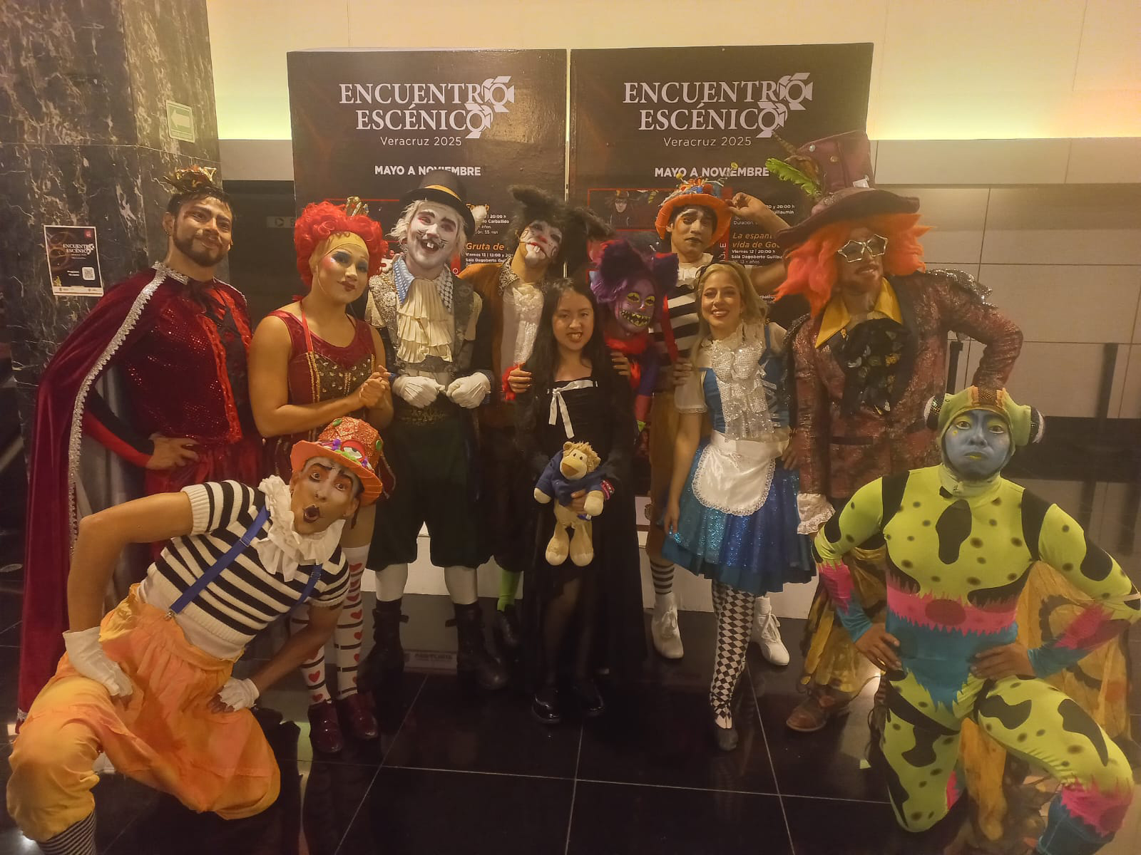 El lugar donde se presentó la obra fue el Teatro del Estado que cumplió con los estándares de seguridad, con amabilidad apoyaron a la compañía de Circo Dragón el elenco es el siguiente: Sombrerero Loco (Rodrigo Orellana), Alicia (Kenia Karina Flores), Reina de roja (Tessi Monserrat Delgadillo), Liebre (Jason Gael Vivas), Tweedle dee (Alejandro Villalpando), Tweedle Dum (Jonathan Francisco Márquez), Gato Rison (Esmeralda Gutiérrez), Rey de corazones (Daniel González), Oruga (Fernando Ignacio), Conejo Blanco (Diego Méndez), Asistente de producción (Orson Guerra), Iluminación (Condorito), Staff (Evelyn Zararain), Staff (Valeriana Flores), Vestuario (Irma Teresita Becerra y Miguel Plasencia), Coordinación técnica/vídeo (Eric Lomeli), Dirección General (Roberto Ramírez), Dirección Comercial (Zhores Vega), Dirección de Mercadotecnia (Alejandra Ibañez), Guión de (Gabriela Sierra Becerra), Dirección de doblaje (Evaad estudio de Cristóbal Orellana), Dirección vocal y coros (Aldonza Orellana), Productor general y Diseño audiovisual (Rodrigo Orellana).