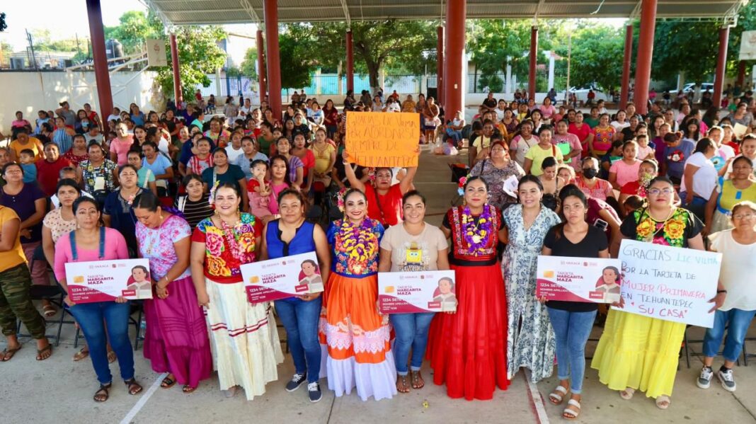 En este marco, la Sebienti también entregó 380 tarjetas Margarita Maza en Santo Domingo Tehuantepec a igual número de jefas de familia, que les permitirá mejorar su economía, emprender o fortalecer actividades productivas.