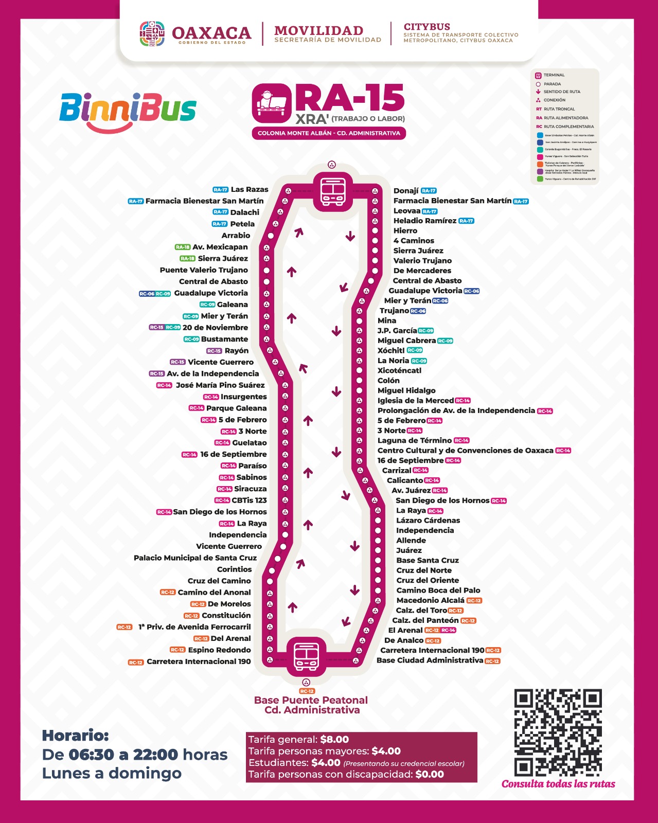 Oaxaca de Juárez, Oax. 27 de noviembre de 2025. El Sistema de Transporte Colectivo Metropolitano BinniBus Oaxaca inició la operación de la ruta RA-15 “Xra” que significa Trabajo o Labor en Chocholteco, la cual conecta a la colonia Monte Albán con Ciudad Administrativa.