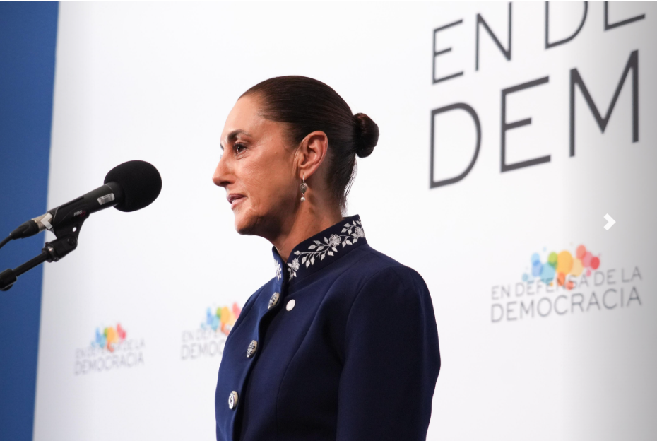 Destacó que acudió a la IV Cumbre en Defensa de la Democracia a nombre de un pueblo trabajador, creativo y luchador, con una historia milenaria que reconoce su origen en las grandes culturas originarias que fueron acalladas, esclavizadas y saqueadas, pero nunca derrotadas ni conquistadas. Y cobijada por el legado de Miguel Hidalgo, José María Morelos y Pavón, Leona Vicario, Josefa Ortiz Téllez-Girón, Benito Juárez, Emiliano Zapata, Francisco Villa, Francisco I. Madero, Venustiano Carranza, Felipe Ángeles, Adela Velarde, Hermila Galindo, el General Lázaro Cárdenas y Frida Kahlo, así como de un pueblo que, en 2018, decidió que el desarrollo democrático existe bajo el legado de “Por el bien de todos, primero los pobres” y que, en 2024, rompió su historia de machismo y eligió a su primera mujer Presidenta.