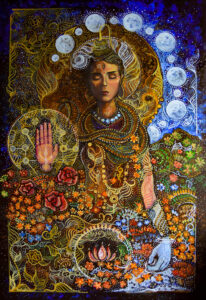 Porque para mí es evidente: si existe un dios, es mujer. Basta pensar en la madre tierra: da vida, genera semillas. El universo es femenino. Y yo también me reconozco como alguien sensible, con una parte femenina muy desarrollada. No es un “ellos contra ellas”: es un equipo. En mis cuadros, las divinidades siempre son mujeres, poderosas y sensibles.
