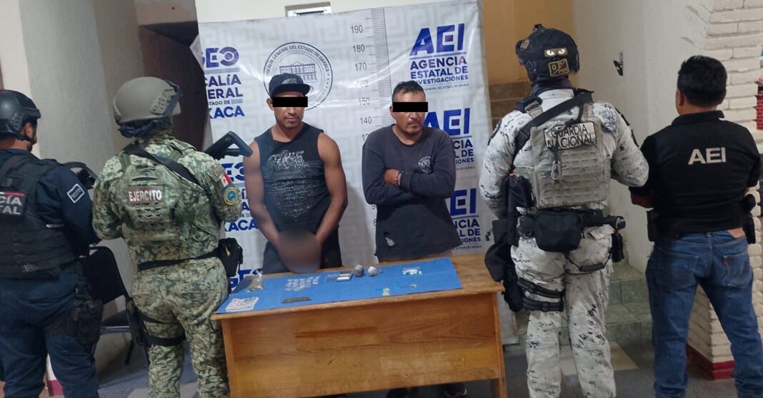 Oaxaca de Juárez, Oax., a 6 de abril de 2026.- La Fiscalía General del Estado de Oaxaca (FGEO) ejecutó una orden de cateo en el municipio de Soledad Etla, acción que permitió la detención de dos hombres identificados como D.J.H. y V.I.D.H., así como el aseguramiento de diversas dosis de drogas.