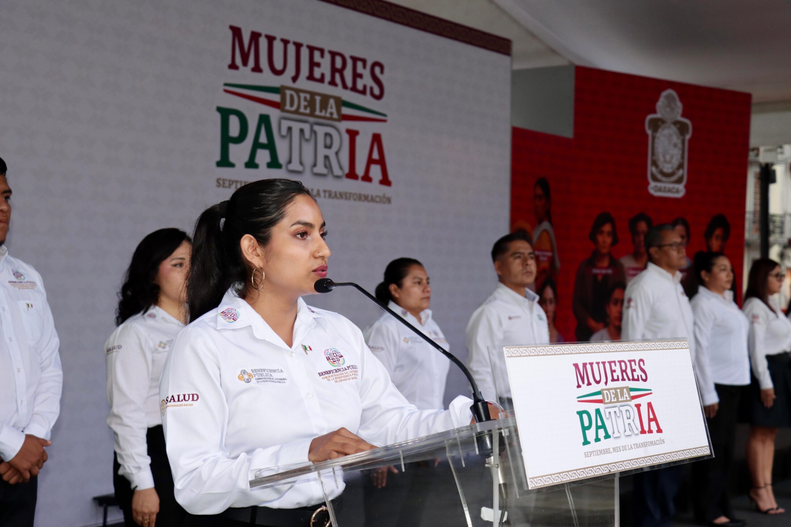 Durante esta ceremonia que forma parte del programa “Mujeres de la Patria, Septiembre Mes de la Transformación”; la funcionaria estatal recalcó el liderazgo del Gobernador Salomón Jara Cruz en el fomento de la participación de este sector dentro de su administración, honrando así el legado de aquellas heroínas que abrieron camino hacia la justicia y la igualdad.