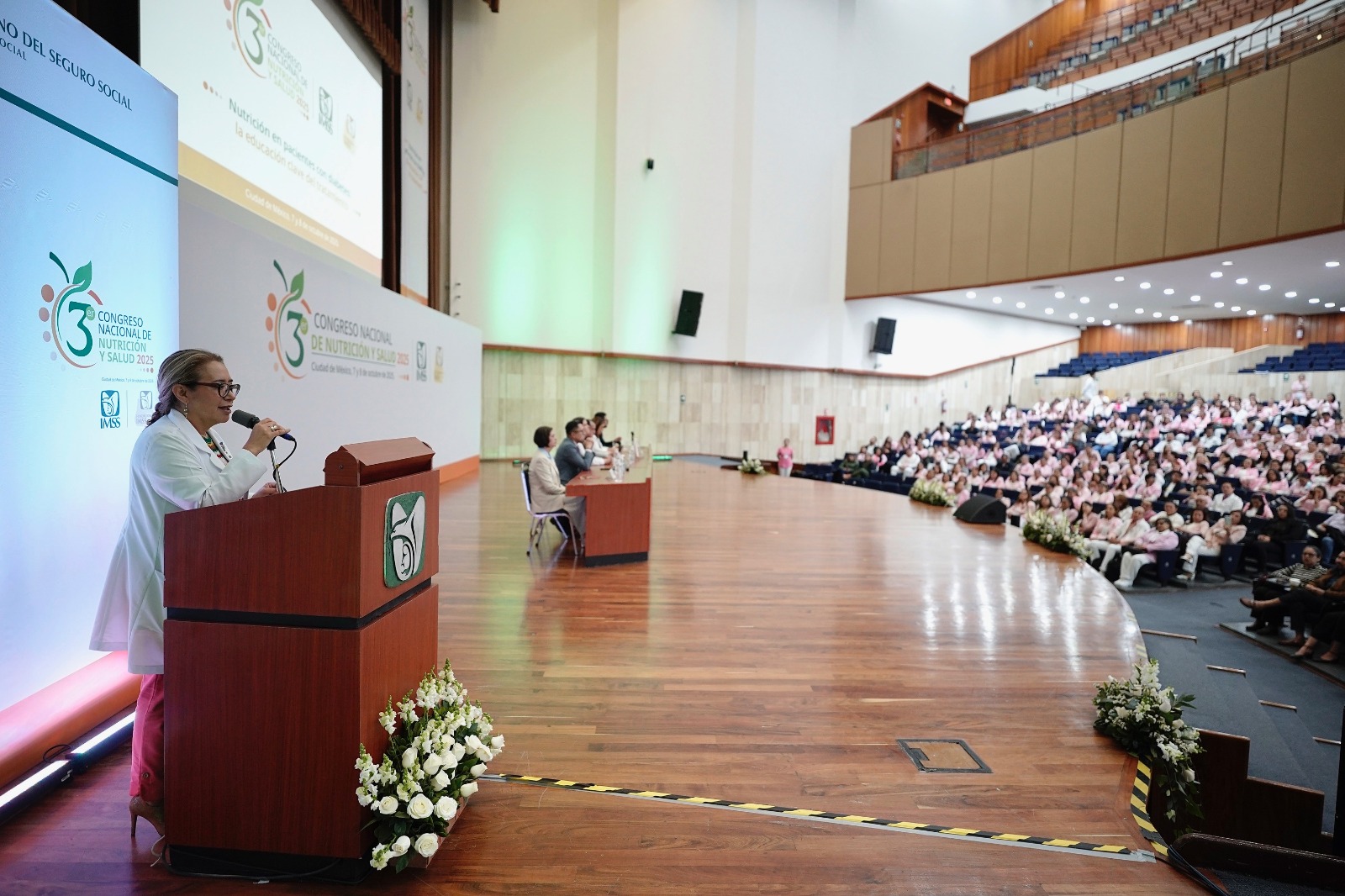 Durante la ceremonia de apertura, en la Unidad de Congresos del Centro Médico Nacional (CMN) Siglo XXI, la directora de Prestaciones Médicas, doctora Alva Alejandra Santos Carrillo, destacó que la nutrición es una pieza fundamental tanto para la prevención como para la calidad de vida de personas que viven con una enfermedad. “La nutrición es parte de todo: de los sanos, para no enfermar, y de los enfermos, para recuperarse. Ustedes son una pieza invaluable en este proceso”, expresó.