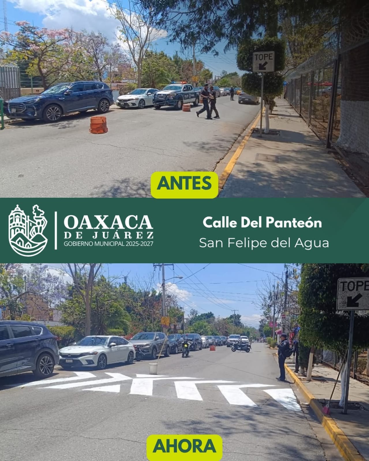🚧 En atención a reportes de vecinas y vecinos, el Municipio de Oaxaca de Juárez realizó trabajos de pintura de topes en la calle del Panteón, en San Felipe del Agua, frente a la CFE.