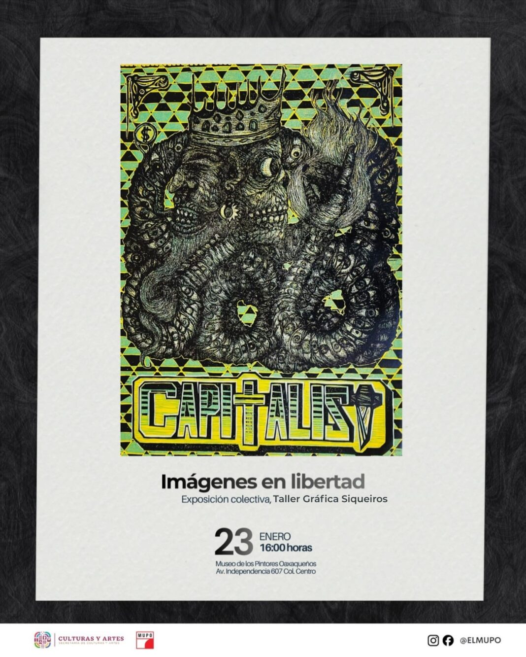 Oaxaca de Juárez, Oax. 22 de enero de 2026.– El Museo de los Pintores Oaxaqueños (Mupo) exhibirá a partir de las 16:00 horas de este viernes 23 de enero, la exposición colectiva “Imágenes en Libertad”, integrada por 30 obras realizadas por Personas Privadas de la Libertad (PPL).
