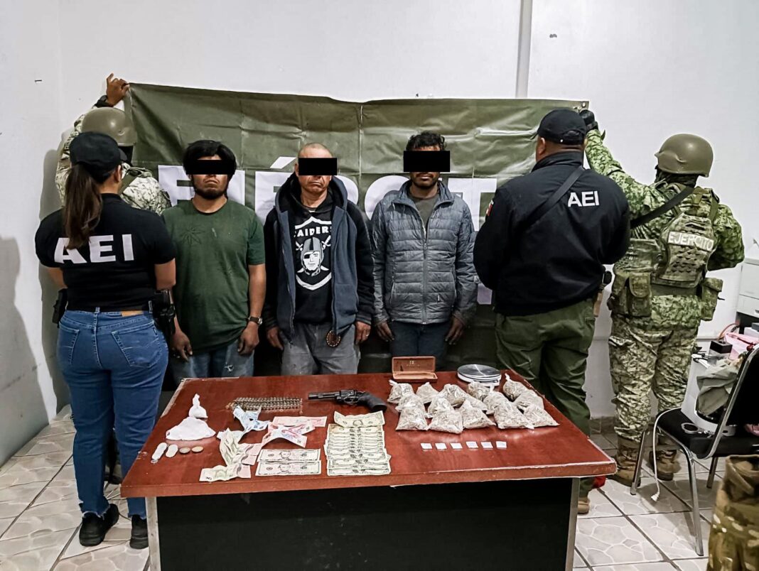 Durante el cateo fueron asegurados diversos indicios, entre ellos sustancias con características de drogas, dinero en efectivo del que no pudieron comprobar su origen legal, así como un arma de fuego.