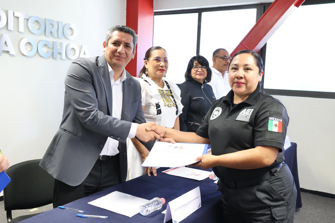 El evento fue encabezado por el Fiscal General del Estado de Oaxaca, Bernardo Rodríguez Alamilla, contó con la participación de la titular del Secretariado Ejecutivo del Sistema Estatal de Seguridad Pública, Karina Varón Ortiz; así como el director del Centro Estatal de Evaluación y Control de Confianza Donato López Sánchez, la Directora del Servicio Profesional de Carrera, Amalia Rueda Alonso y la directora del Centro de Integración Juvenil, Marisol Gómez González y el coordinador General de la Agencia Estatal de Investigaciones, Jaciel Vásquez Castro.