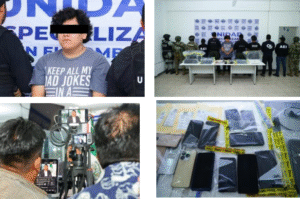 Durante la ejecución del cateo, aseguraron equipos tecnológicos utilizados presuntamente para la operación criminal, entre ellos 2 computadoras gamer de escritorio, siete laptops, 11 smartphones y una tableta electrónica.
