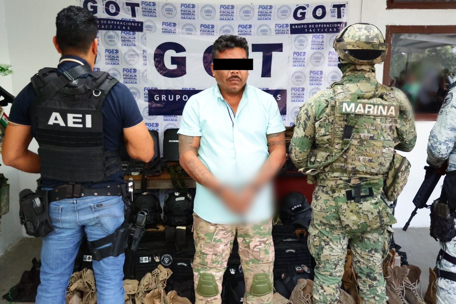 Oaxaca de Juárez, Oax. 02 de diciembre de 2025.- La Fiscalía General del Estado de Oaxaca (FGEO), junto con la Secretaría de Marina (SEMAR) realizaron operativos coordinados en el Istmo de Tehuantepec con los que se logró el aseguramiento de diversas armas de fuego así como equipo táctico localizadas en un rancho que era centro de operación de un grupo criminal, además de la detención de una persona, identificada como el principal proveedor de armamento del grupo delictivo de “Los Cromos”.
