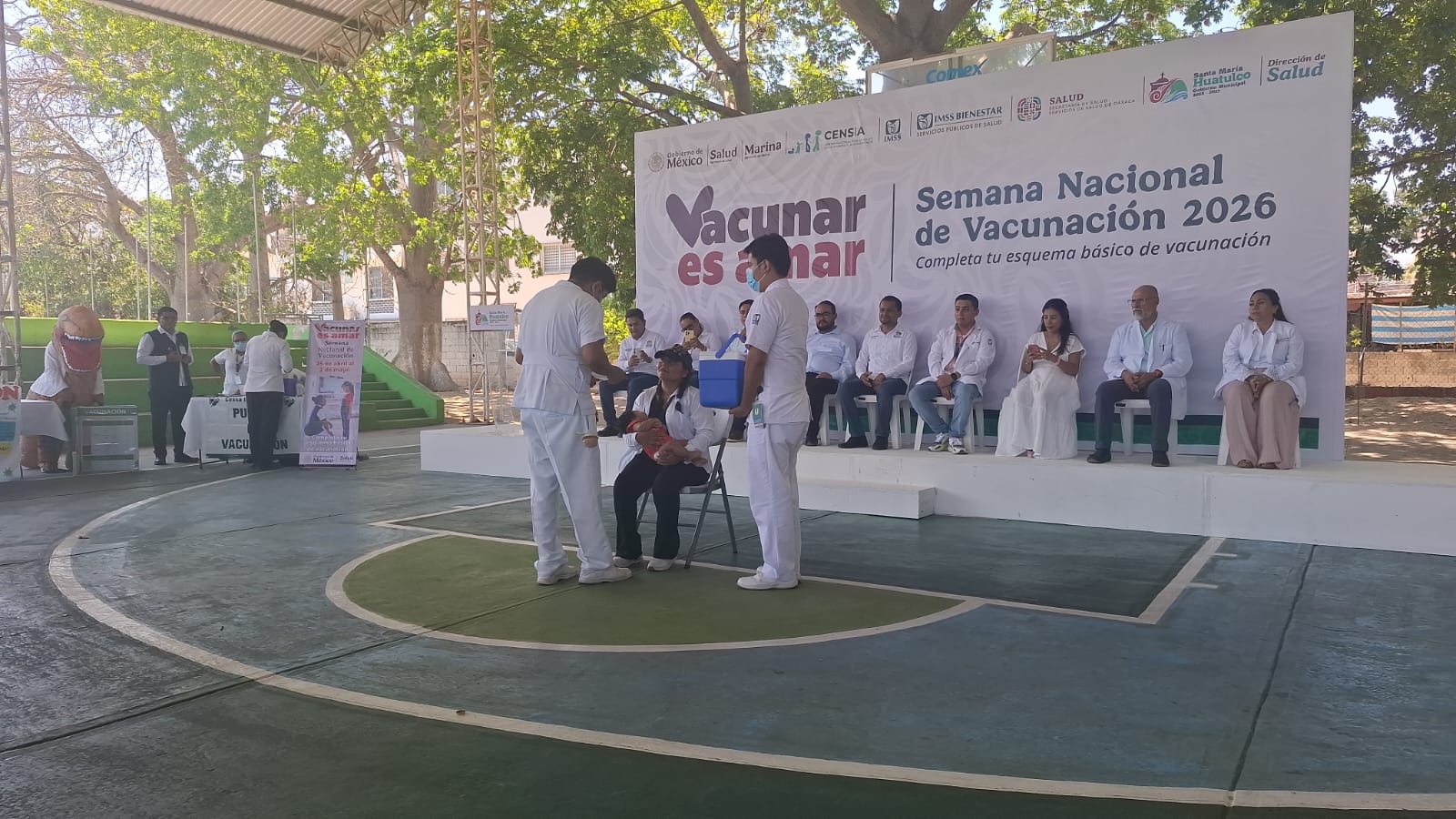 El Instituto Mexicano del Seguro Social (IMSS) en Oaxaca inició la Semana Nacional de Vacunación 2026 que se desarrolla del 25 de abril al 2 de mayo bajo el lema “Vacunar es amar”, a través del Hospital General de SubZona (HGSZ) No. 41, en Santa Cruz Huatulco, con el objetivo de fortalecer las acciones del Programa de Vacunación Universal en beneficio de la población.