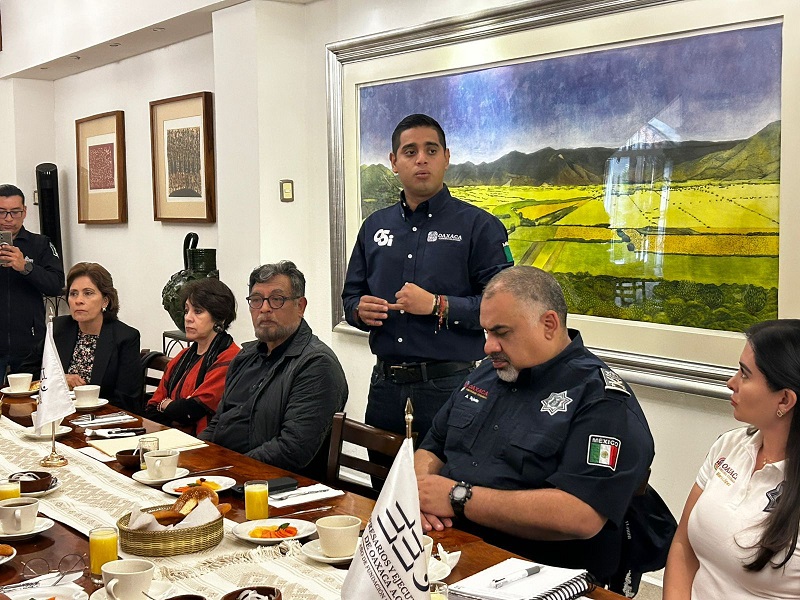 Oaxaca de Juárez, Oax. 13 de noviembre de 2025.- Para fortalecer la colaboración entre el sector productivo y las instituciones de seguridad del Estado; el director del Centro de Control, Comando, Comunicación, Coordinación e Inteligencia (C5i), Jaime González Estudillo sostuvo una reunión con integrantes de la Asociación de Empresarios y Ejecutivos de Oaxaca.