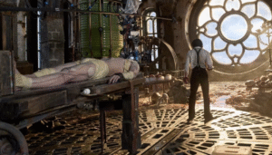 La historia se desarrolla como si estuviéramos leyendo un libro frente a la pantalla: cada episodio es un capítulo donde la voz del creador y la criatura se confunden en un mismo eco. Del Toro utiliza la cinematografía en su máximo esplendor; cada plano se siente como un recorrido lleno de detalles: desde la elegancia de los props, hasta los diseños de los sets y el impecable vestuario. Todo está colocado con una intención que aporta sentido a la historia.