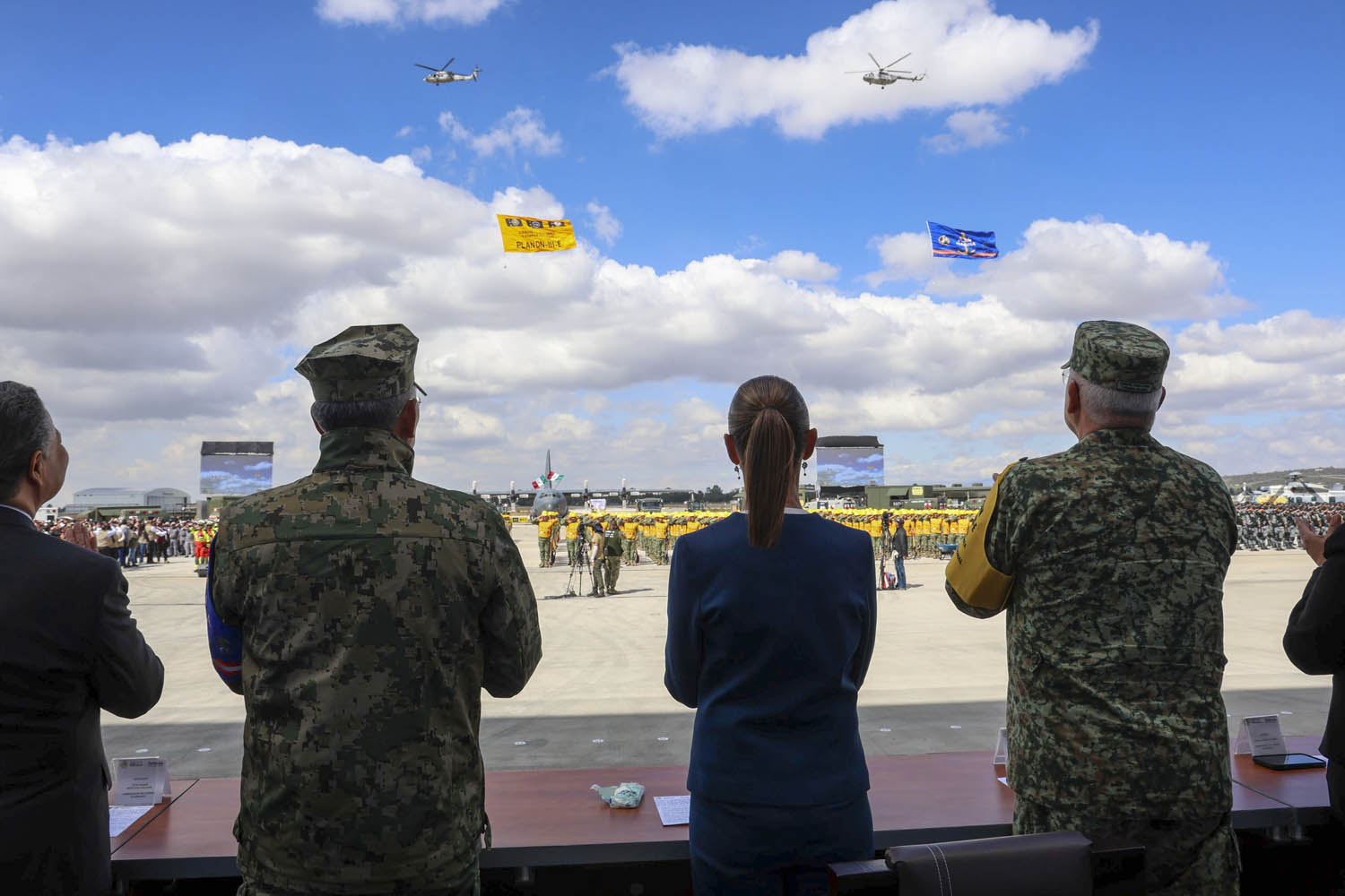 Desde el Centro Estratégico Militar de Acopio, la Presidenta de México, Claudia Sheinbaum, rindió homenaje y reconoció al personal que participó en la aplicación del Plan DN-III-E y Plan Marina en Hidalgo, Puebla, Querétaro, San Luis Potosí y Veracruz, tras las intensas lluvias que se presentaron el pasado octubre, y a quienes agradeció por sus esfuerzos para atender la emergencia en un mes y con ello demostrar que la patria es más fuerte que cualquier adversidad.