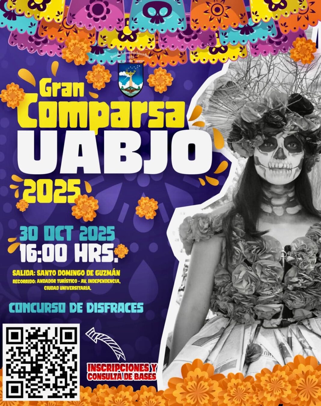 La UABJO les invita a formar parte de la “Gran Comparsa UABJO 2025” este 30 de Octubre a las 4:00 pm con salida en Santo Domingo de Guzmán.