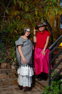 Ángela Dillon: Fue un encuentro lleno de sincronía. Conocí el trabajo de Elena en una exposición sobre huipiles titulada Una larga hebra en el Museo de las Culturas de Oaxaca Santo Domingo -en Oaxaca- que me conmovió profundamente. Después de varias charlas, entendimos que compartíamos la misma fascinación por los textiles y por el poder simbólico del acto de vestir. Fue como si nos conociéramos de toda la vida. Desde ahí nació una amistad tejida con respeto y admiración mutua. Además, Oaxaca me enamoró; para mí, es la esencia misma de lo que significa ser mexicano: una identidad viva, colectiva y profundamente arraigada en la tierra y la gente. Regresé cada año, hasta que hace unos treinta años decidimos mi esposo Bill y yo establecernos aquí definitivamente.