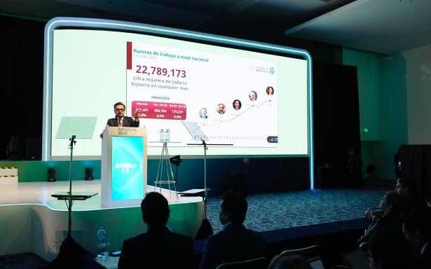 - Resaltó que México ha alcanzado el máximo histórico al registrar 22.7 millones de empleos ante el Seguro Social.