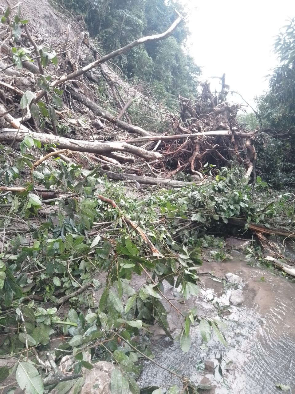 - Un derrumbe ocasionó la caída de dos postes, por lo que personal de la CFE se encuentra trabajando en la zona para restablecer el paso