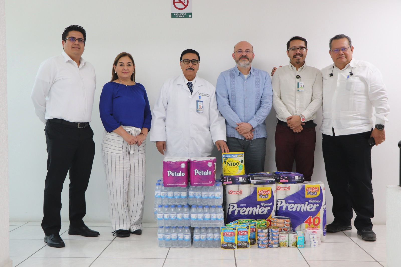 El titular del IMSS en Oaxaca, doctor Julio Mercado Castruita, acompañado por los integrantes de su Cuerpo de Gobierno, explicó que en este espacio se recibirán alimentos no perecederos, como atún, café en polvo, frijol, arroz, sardina, sopa, agua embotellada, leche en polvo, aceite, azúcar y artículos de limpieza, entre otros productos.